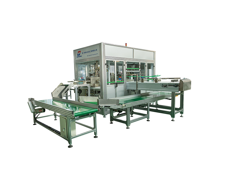 該機在自動化操作下,将尿褲按照包裝的件數通過堆垛機碼放整齊,然後推入包裝機的壓縮平台。 當包裝機檢測(cè)到産(chǎn)品後,會進行産(chǎn)品自動壓縮、輸送堆疊産(chǎn)品、送袋、吸帶、開袋、産(chǎn)品裝袋等工序。